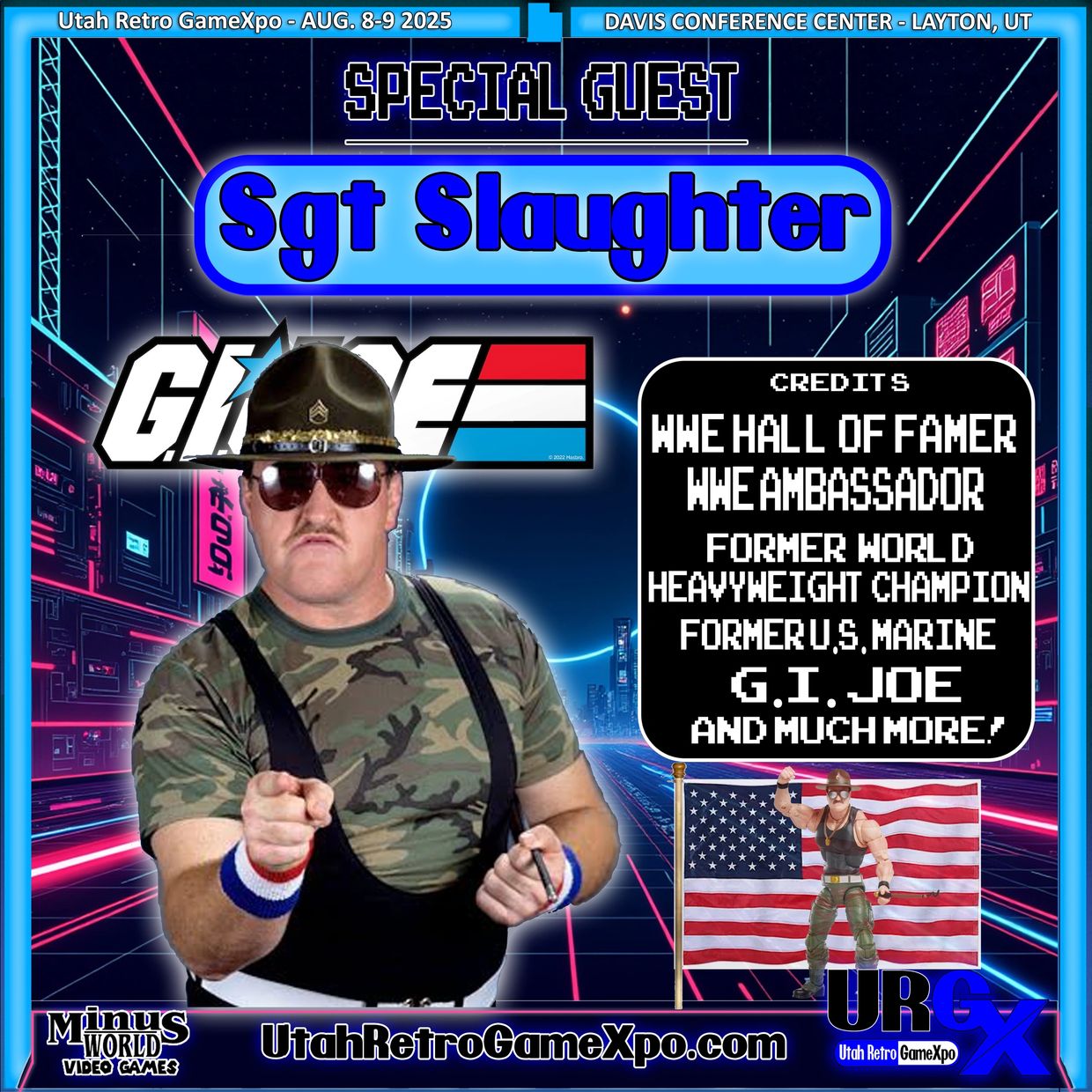 Looking as fit as he did when he first laced up his boots in 1974, Sgt. Slaughter always travels with his tights and boots and will fight for truth, justice and the American way at a moment’s notice.